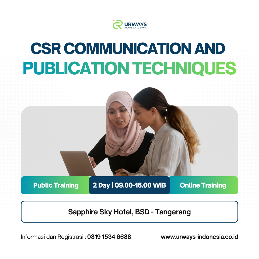 Komunikasi CSR merupakan bagian penting dalam tata kelola keberlanjutan. Program yang baik tidak akan memberikan dampak optimal bila tidak dikomunikasikan secara benar, akurat, dan bertanggung jawab. Karena itu, CSR Communication and Publication Techniques Training dirancang untuk memperkuat kemampuan peserta mengelola komunikasi CSR yang transparan, kredibel, dan berbasis bukti.