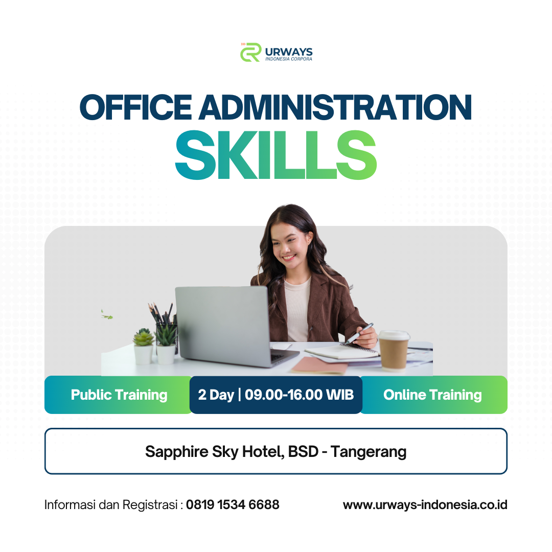 Pelatihan Office Administration Skills untuk meningkatkan kemampuan administrasi perkantoran, pengelolaan dokumen, komunikasi profesional, dan manajemen jadwal secara sistematis dan efisien.